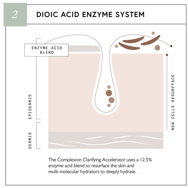 “I wanted to create an effective treatment to specifically address acne-prone, bumpy, rough texture, and uneven skin - in a gentle way, without the usual irritation associated with strong peels. What was important for me was to take a hyperpigmentation first-tackling approach in our exfoliation system, while also retexturing and renewing the skin. This multi-molecular enzyme acid complex is effective and kind to the skin, as it delivers brighter, silky smooth skin.” - xx Farah