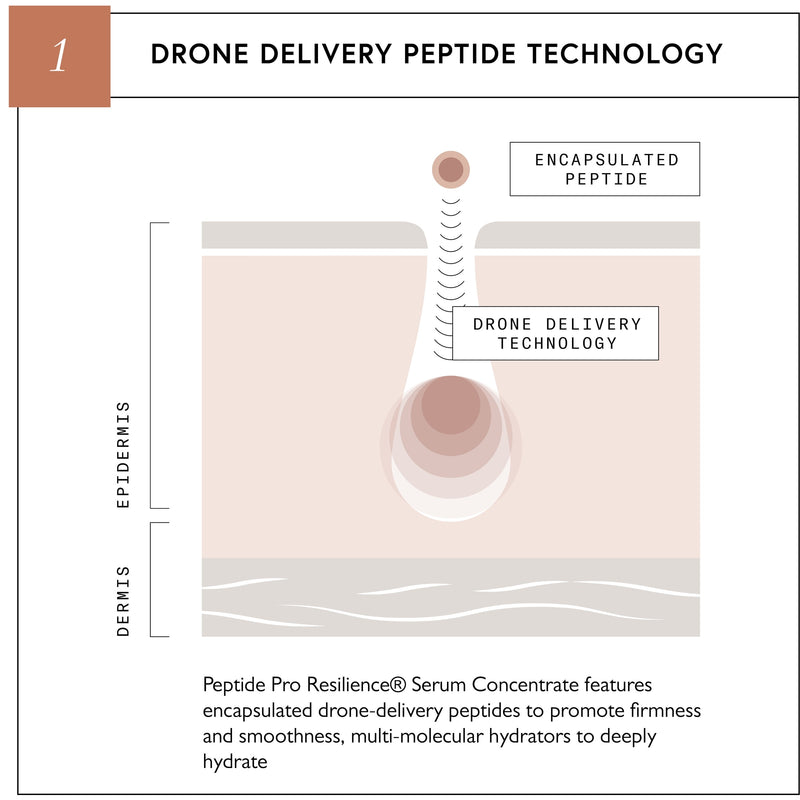 The Peptide Pro Resilience® Serum Concentrate combines our proprietary 10.5% Ayurvedic Bioflavonoid Complex with encapsulated drone-delivered peptides to visibly smooth facial expression lines, reduce the look of redness, and promote skin repair for firmer, plumper, and visibly calmer skin.