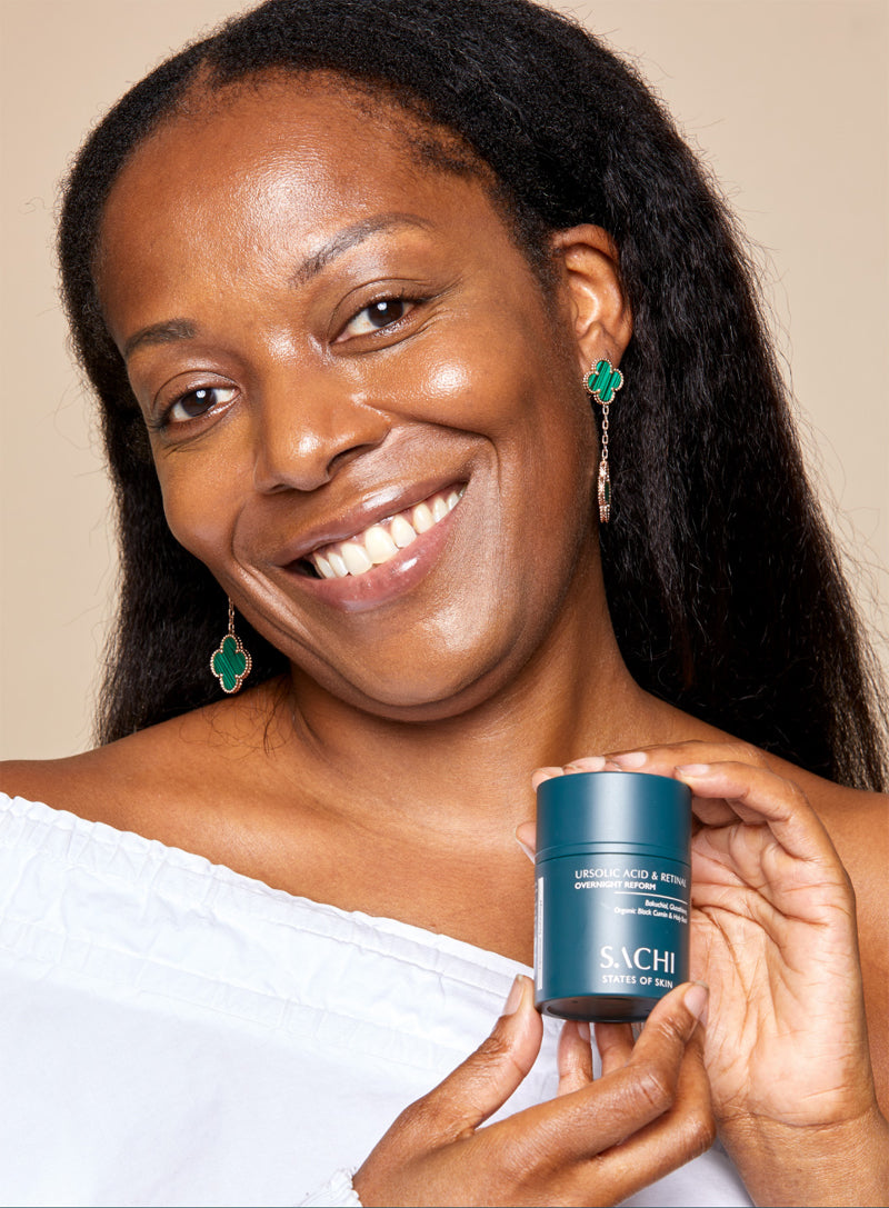 For Retinoid beginners, avoid exfoliating for 2-3 weeks prior to use and use once a week before building up frequency of use and allow your skin to acclimate before adding any other skin stimulating ingredients. Afterward, or for Retinoid intermediates, you can alternate the products, using the CCA twice a week and the UAR 1-3 times a week. Lastly, for experienced Retinoid users, you can layer, still taking care to use the Complexion Clarifying Accelerator only about twice a week as an overnight treatment. See Sachi Papers Retinoid Series for more guidance.