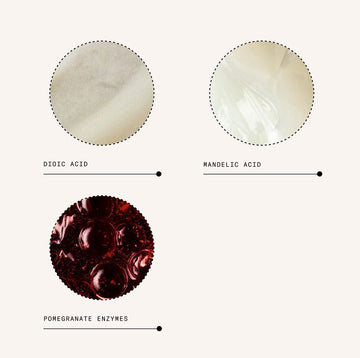 Formulated with Dioic Acid, Mandelic Acid & Pomegranate Enzymes, this powerhouse blend helps retexturize and resurface the skin, helping smoothen fine lines and wrinkles, stimulate renewal, refine pores and lift stubborn discolourations.