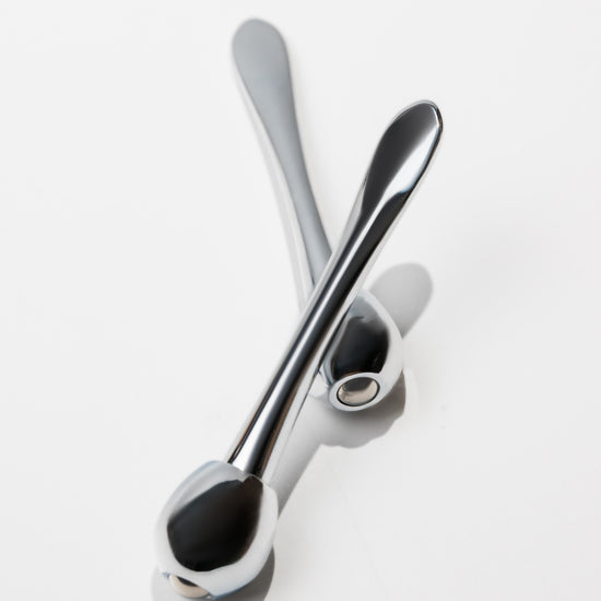 Design: Dual function; cooling rounded massage tip + flat spatula.