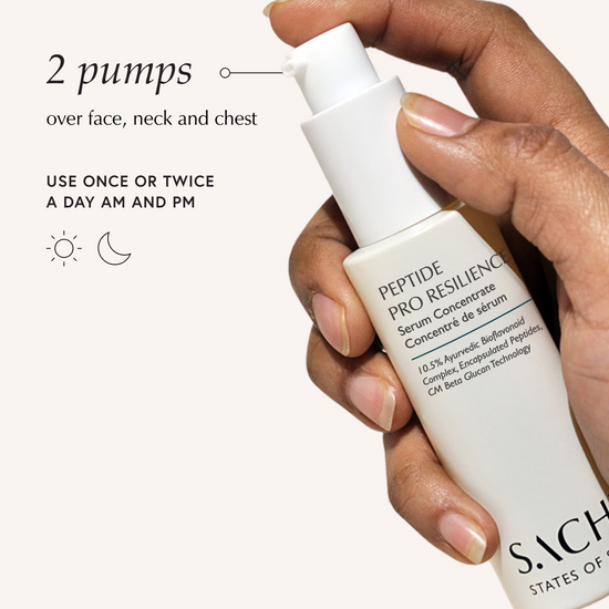 The Peptide Pro Resilience® Serum Concentrate was developed to combine several steps into one, saving you time and money. We know that the variety of serum options can become overwhelming. This multi-tasking, award-winning formula aims to address a host of skin concerns in just one bottle.