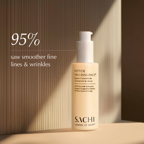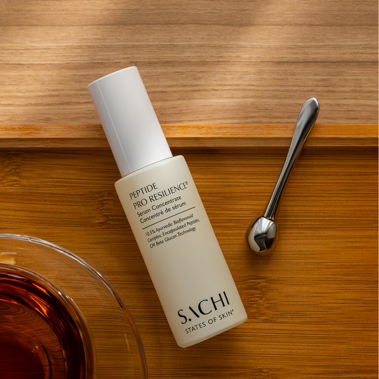 The Peptide Pro Resilience® Serum Concentrate combines our proprietary 10.5% Ayurvedic Bioflavonoid Complex with encapsulated drone-delivered peptides to visibly smooth facial expression lines, reduce the look of redness, and promote skin repair for firmer, plumper, and visibly calmer skin.