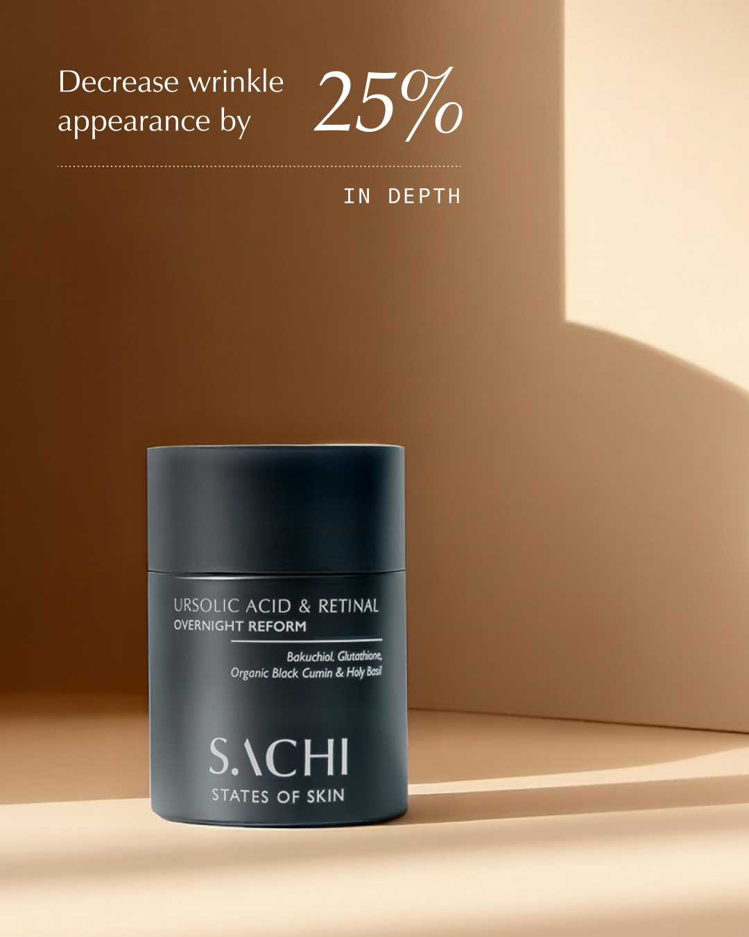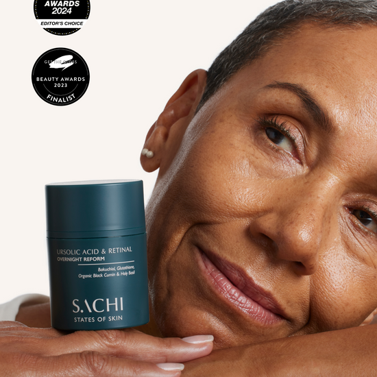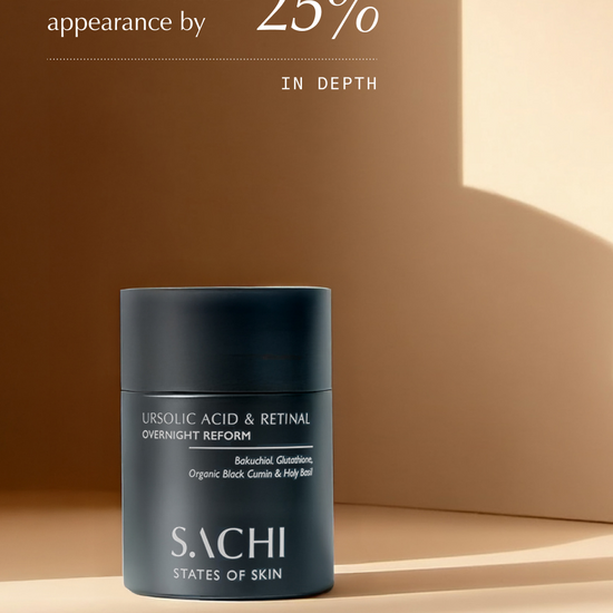 Ursolic Acid & Retinal Overnight Reform: This multi-award winning, Ayurvedic retinal treatment works while you sleep to improve the appearance of collagen-depleted skin, supporting the skin’s natural renewal process without causing irritatation. Designed so you can skip the 'ladder approach', delivering advanced results in just 4 weeks* for a smoother, brighter, and plumper complexion.