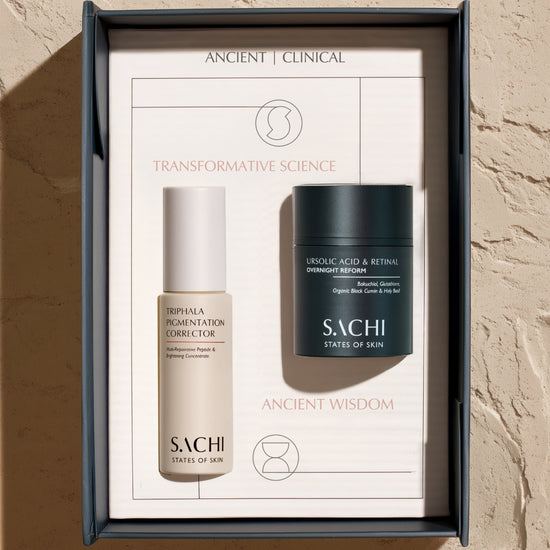 Addressing hyperpigmentation requires a multi-step routine with brightening ingredients in each step, to deliver the most transformative results. We recommend to pair the Triphala Pigmentation Corrector with either the Complexion Clarifying Accelerator or Ursolic Acid & Retinal Overnight Reform, to enhance Triphala’s performance and increase the rate at which your hyperpigmentation, discoloration, and dark spots fade.